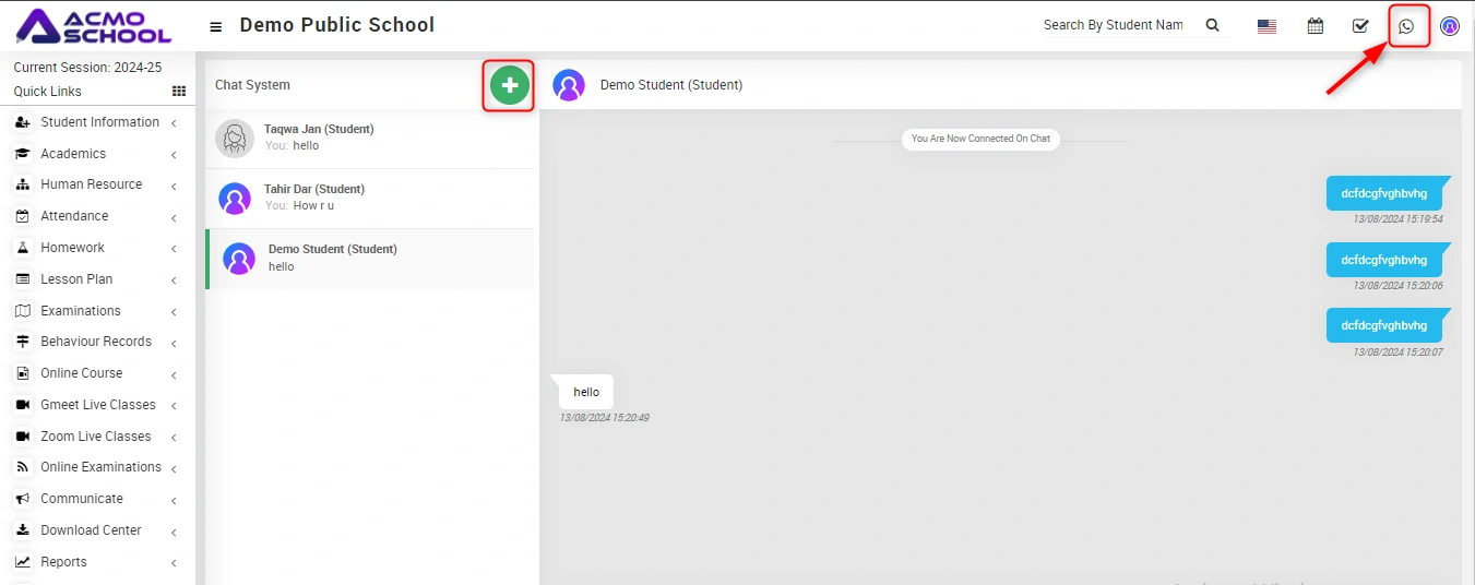 About Chat? In Chat System, staff can chat with other staff members and student can also chat with other staff members. Before starting chat we have to add member to our chat list. Updated on August 22, 2024 Tagged: About ChatAdmin Was this article helpful? Yes No Related Articles How to Add New Event in Calendar? About Calendar