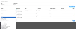 Add Exam Subject button showing at the right side of the model, simply just click on this button to open the multiple field for adding subject.