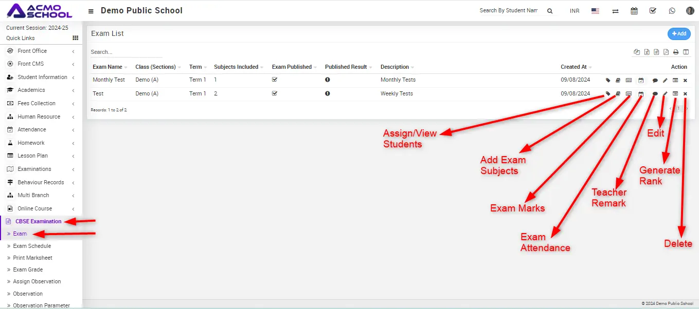 Note :- When you creating two or more exams, such as Exam One and Exam Two, and linking them, make sure to add the same subject to both exams. If you don’t keep the same subject in both exams, the marksheet may appear irrelevant when you print it.