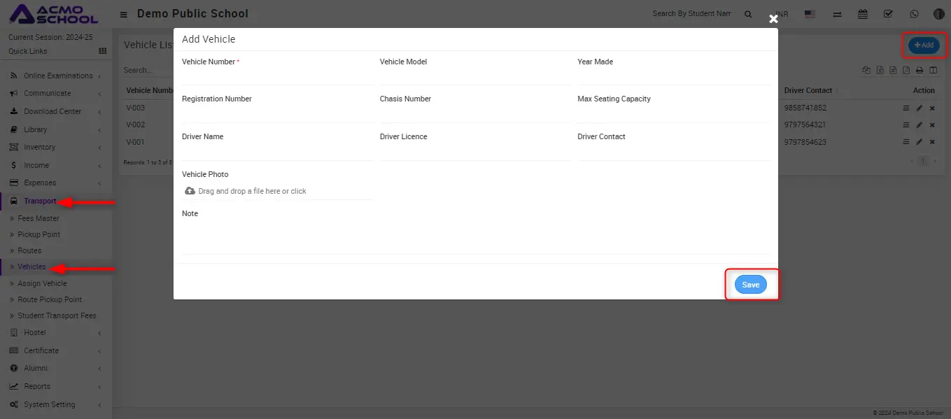 Now click on +Add button for add new vehicle, add vehicle model will be open.