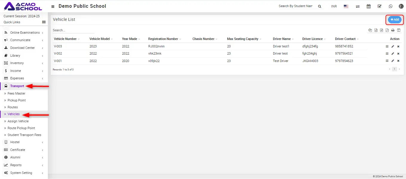 You can View, Edit, Delete vehicle present at the vehicle list Action column.