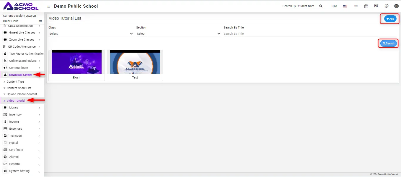 The video link will be shown in Video Tutorial List, you can search that video link by class, section or search by title.
