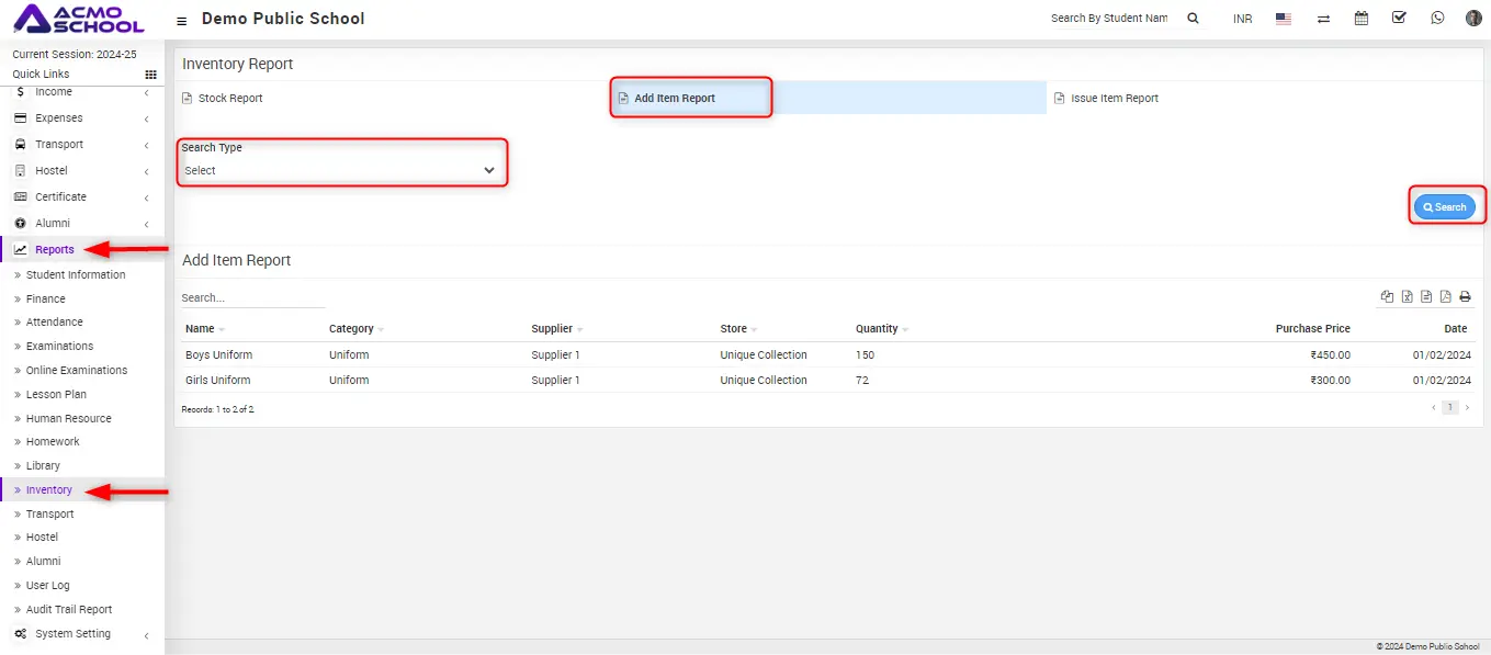 You can also filter the record of different time range for this select the Search Type and click on Search button.