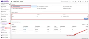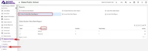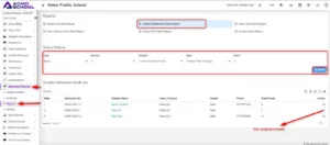 To check the class section wise rank report, click on the class-section-wise rank report, the list will appear at the bottom.