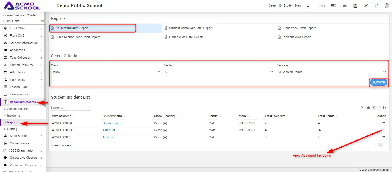 Go to the Behaviour Record > Reports, after clicking on reports, all incident reports will open.