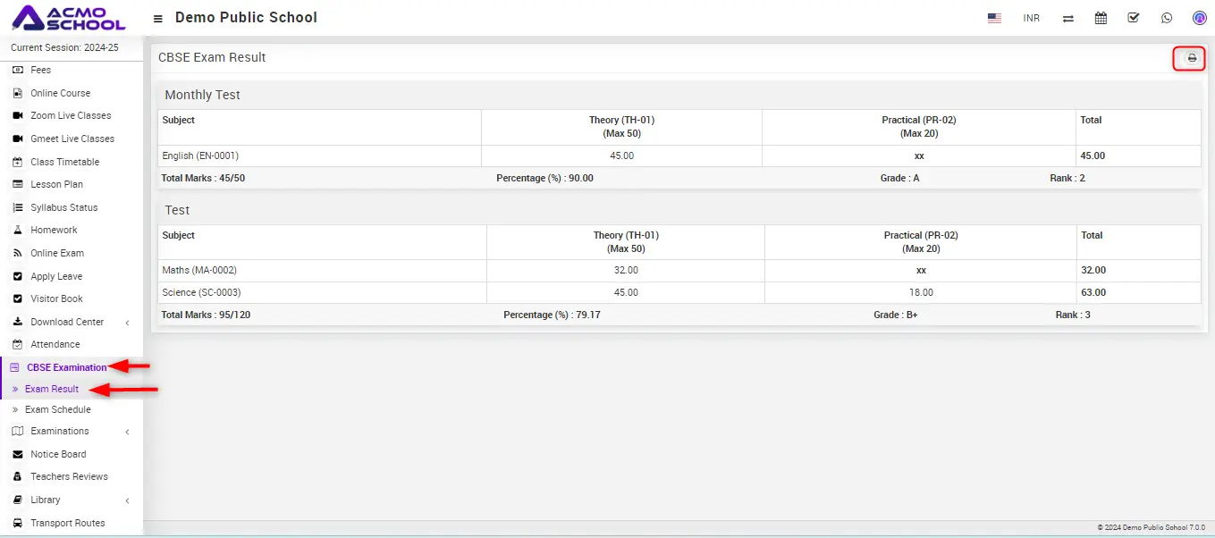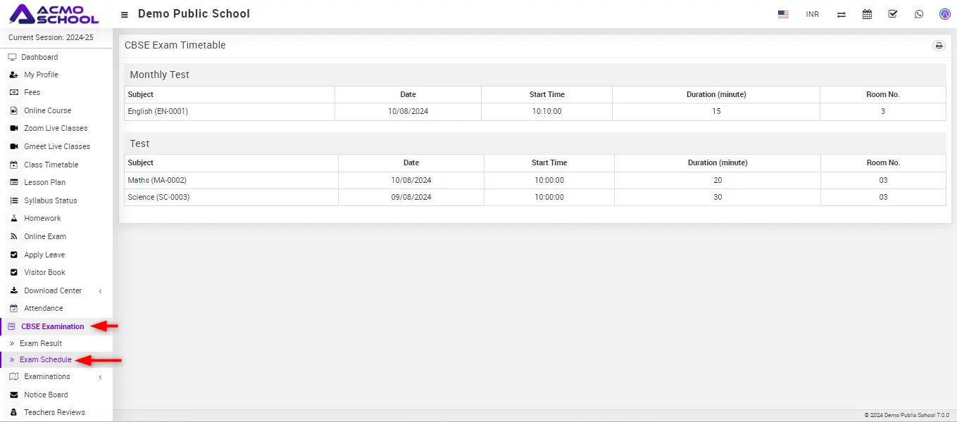 Simply click on the CBSE Examination module to access two options: Exam Result and Exam Schedule.