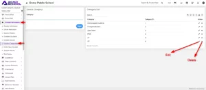 To edit student category click on Edit icon and to delete student category click on Delete icon present in the category list.