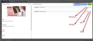 Once course is created course detail modal will open, here you will see three option Add Section, Order Section and Publish Course.