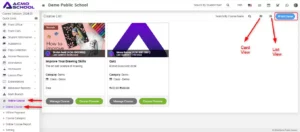 To delete the course, click on the Delete icon present at the top left side of the Course Details modal.