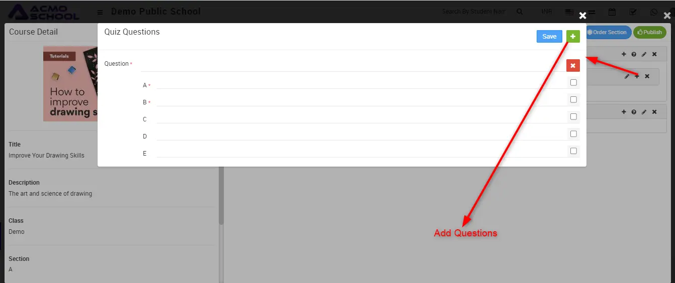 Here enter Question and enter Option A, B, C, D and E and check the option which is correct and then finally click on the Save button. Here option A and B are required.