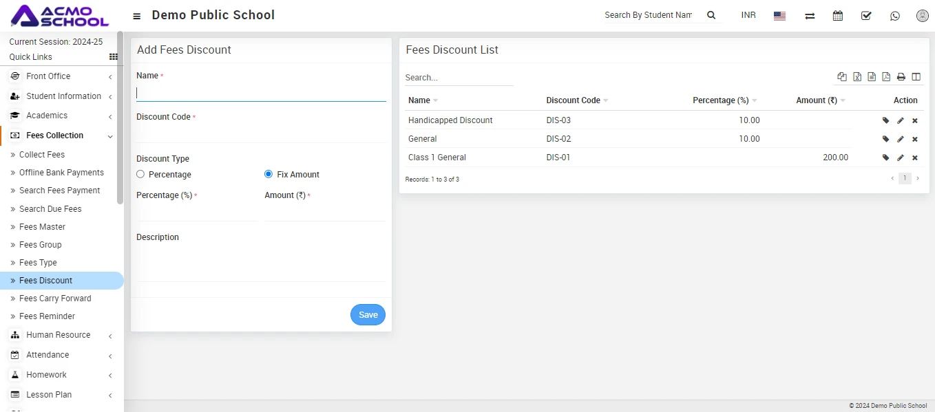 To add a fee discount, go to Fees Collection > Fees Discount.