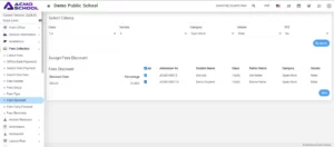 To assign students, click on the Assign Student icon, which is shown in the Action column in the fees discount list. By clicking on this icon, it will redirect you to the Assign Fees Discount page.
