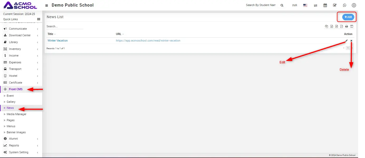 Here you can Add/Edit/Delete News in the News List page.