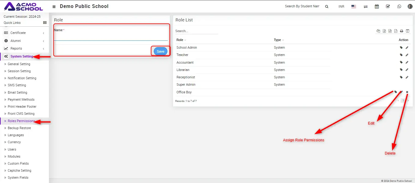 Here you can assign permission for each module and then click on Save button.