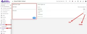 To edit room type click on the Edit icon and to delete the room type click on the Delete icon present in the room type list.