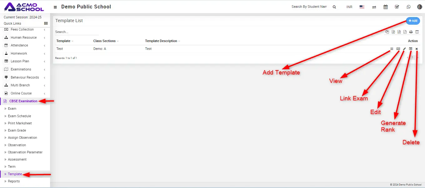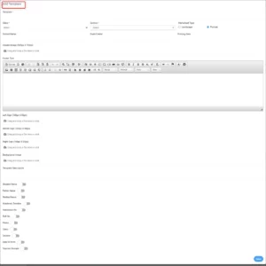 In Add Template model, first enter the template name, then select the class, section and Add other fields.